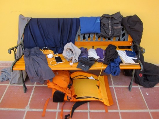Según Hyde, despojarse de sus posesiones a su mínima expresión no fue tan fácil. "Empecé con mis prendas de vestir: 2 camisas, 1 par de pantalones, 1 short, 1 par de sandalias, un par de gafas de sol y ropa interior. Añadí unas cuantas cosas que pensé que eran imprescindibles para mí como un iPad y la cámara. Añadido una mochila, un kit de baño, una toalla y un par de cosas al azar (bolígrafo, cable de conexión, cargadores) y probé. Después de cinco semanas de viaje, había más cosas que no usaba en mi bolso que las que realmente usaba. "