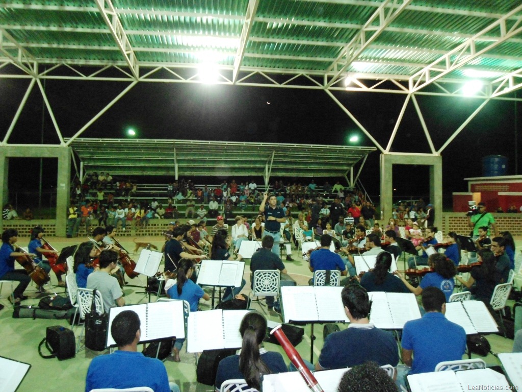 Pasadas las seis de la tarde el recién terminado estadio del sector “Alí primera” se fue llenando de gente deseosa de apreciar el despliegue de talentos de los muchachos que conforman la orquesta, comandados por el Director Yuri Hung. “Estamos felices porque llevamos tiempo haciendo estos conciertos en las comunidades” afirmó Hung.