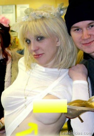 1. Courtney Love. La cantante no tiene problema con mostrar su busto en cualquier lugar; el conflicto es para quienes la tienen enfrente y pueden ver el mal trabajo que le hicieron, pues se le ven deformes.