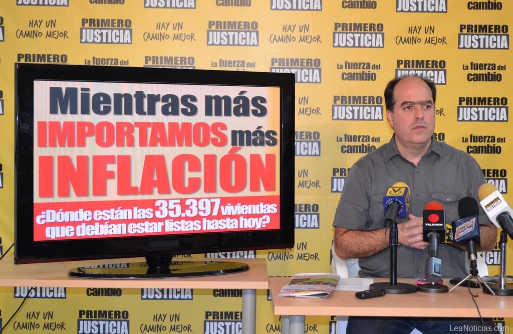 Julio Borges, coordinador nacional de Primero Justicia y diputado a la Asamblea Nacional presentó cifras oficiales que demuestran la caída total de la producción nacional en el país y el fracaso de las políticas económicas del gobierno nacional, que genera más inflación y escasez a los venezolanos.