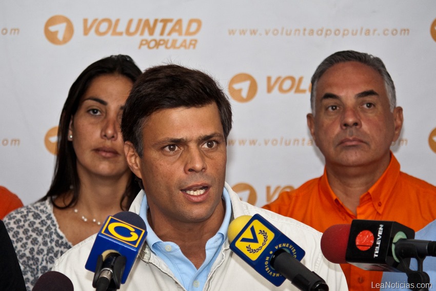 El responsable nacional de Voluntad Popular, Leopoldo López, afirmó este domingo en rueda de prensa que “el gobierno pretende hacer ver que protestar es un crimen, pretende criminalizar la protesta que está enmarcada como un derecho en el artículo 68 de la Constitución, aduciendo que las ‘Asambleas Populares por la Verdad y Defensa de la Constitución’ realizadas en todo el país este fin de semana son acciones violentas”.